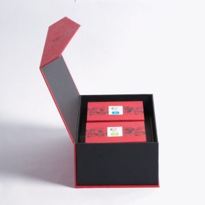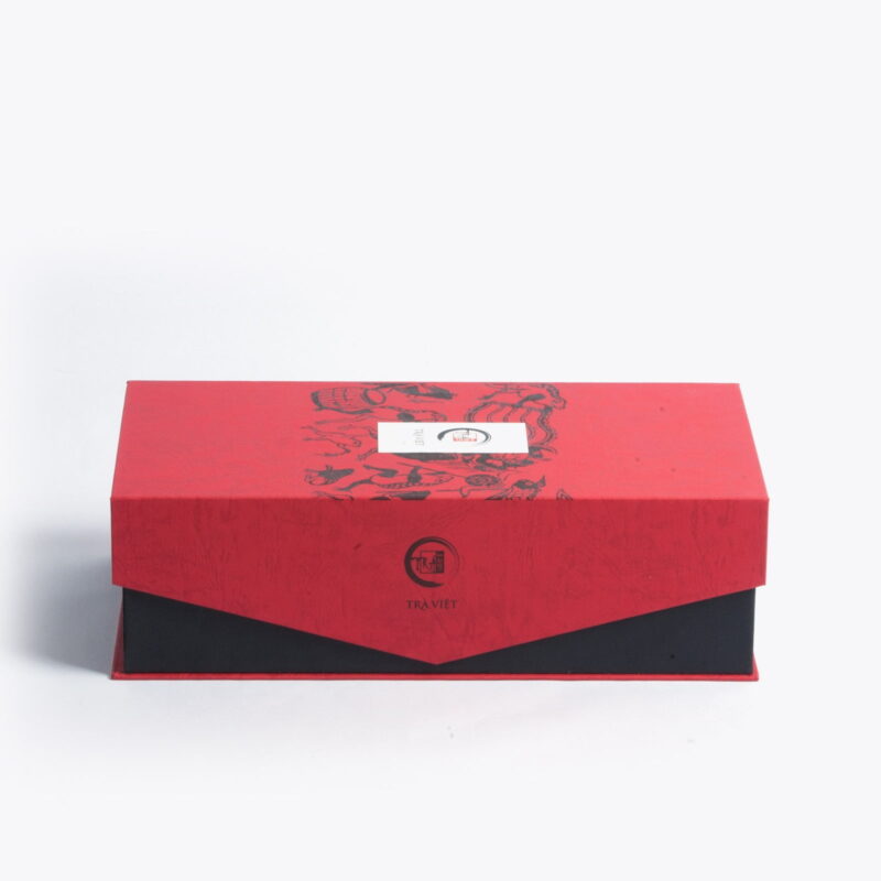 - Hộp trà An Khang, chất liệu giấy mỹ thuật cán gân, bồi cứng cáp, kéo lụa tranh Đông Hồ truyền thống